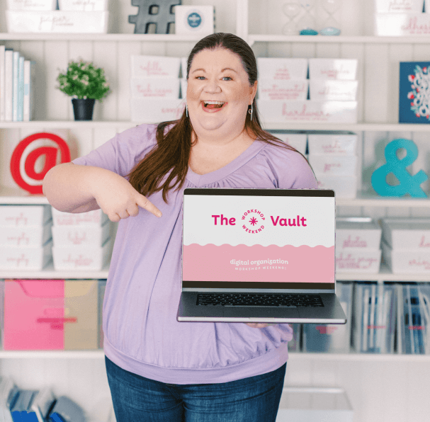 With The Vault – you’ll have access to ALL the Workshop topics for current + future digital organization needs, for a totally no-brainer price.